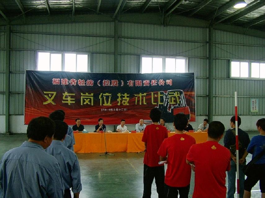 省輕紡(控股)公司于10月12日在莆田晶秀輕化有限公司舉辦一場叉車崗位技術(shù)比武活動(dòng),福建南紙、青山紙業(yè)、化纖集團(tuán)、鹽業(yè)公司各推薦3名選手參賽,省輕工業(yè)安裝公司派員觀摩。舉辦此次崗位技術(shù)比武活動(dòng)得到了省國資委的支持,并派人到場指導(dǎo)。
