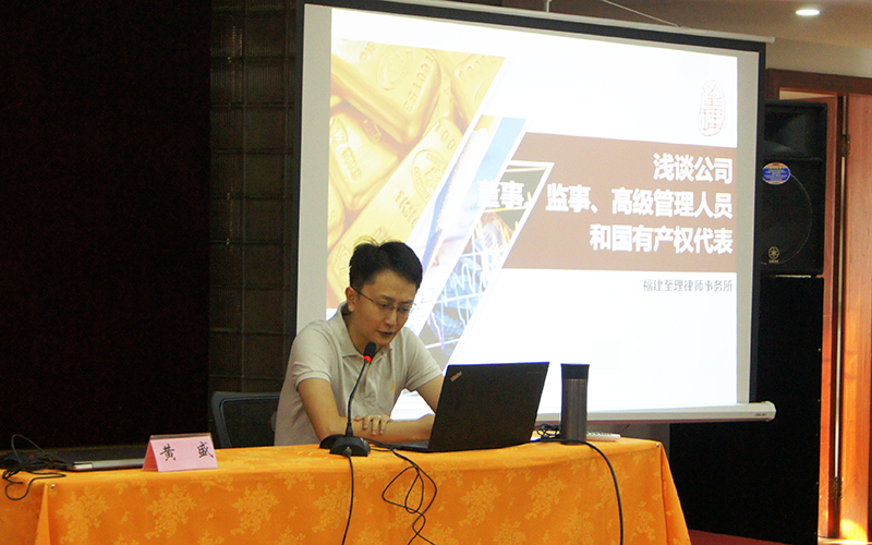 福建至理律師事務(wù)所黃盛律師主講“公司董事、監(jiān)事、高級管理人員和國有產(chǎn)權(quán)代表”課題,在詳細(xì)介紹公司董事、監(jiān)事、高級管理人員職責(zé)和義務(wù)的基礎(chǔ)上,引入對國有產(chǎn)權(quán)代表制度現(xiàn)實(shí)意義的分析,繼而講述國有產(chǎn)權(quán)代表的主要職責(zé)、權(quán)利義務(wù)、請示報(bào)告制度等內(nèi)容,使參培人員清晰地認(rèn)識到國有產(chǎn)權(quán)代表制度設(shè)立的宗旨是為了加強(qiáng)國有資產(chǎn)的產(chǎn)權(quán)管理,保證國有產(chǎn)權(quán)管理者能夠履行忠實(shí)、勤勉義務(wù),維護(hù)國有資產(chǎn)所有者權(quán)益,實(shí)現(xiàn)國有資產(chǎn)保值增值。