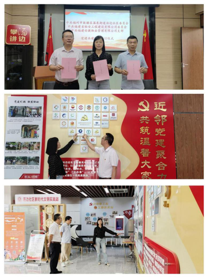 為深入學習貫徹習近平新時代中國特色社會主義思想和黨的二十大、黨的二十屆三中全會精神,切實推動精神文明創(chuàng)建和單位文化建設,構建基層黨組織共建、各方黨員參與、共同提升黨建工作水平的新格局,經(jīng)各方黨組織協(xié)商一致,中共福建省輕安工程建設有限公司委員會、中共福州市鼓樓區(qū)溫泉街道湯邊社區(qū)委員會、中共福建安捷物業(yè)管理有限公司支部于2024年9月27日上午在溫泉街道湯邊社區(qū)簽訂三方黨建共建協(xié)議,正式結成黨建工作聯(lián)盟單位。