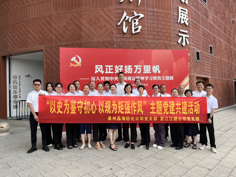 “清風(fēng)護航”叩初心,“聯(lián)學(xué)共促”礪擔(dān)當(dāng)。不久前,晶海輕化黨支部聯(lián)合晉江江建公司黨支部開展“以史為鑒守初心 以規(guī)為矩強作風(fēng)”主題黨日活動,為重點項目建設(shè)注入“廉動力”?;顒又校h員干部在清廉泉州館開展廉政警示教育,重溫入黨誓詞。在交流環(huán)節(jié),雙方聚焦“黨建+”模式賦能工程建設(shè)、“清廉+”理念護航項目攻堅等創(chuàng)新路徑,深入探討如何將黨組織戰(zhàn)斗力轉(zhuǎn)化為項目攻堅執(zhí)行力,以黨建共建凝聚廉潔共識、以作風(fēng)建設(shè)夯實質(zhì)量根基,共同打造經(jīng)得起歷史檢驗的精品工程、廉潔工程的行動路徑。